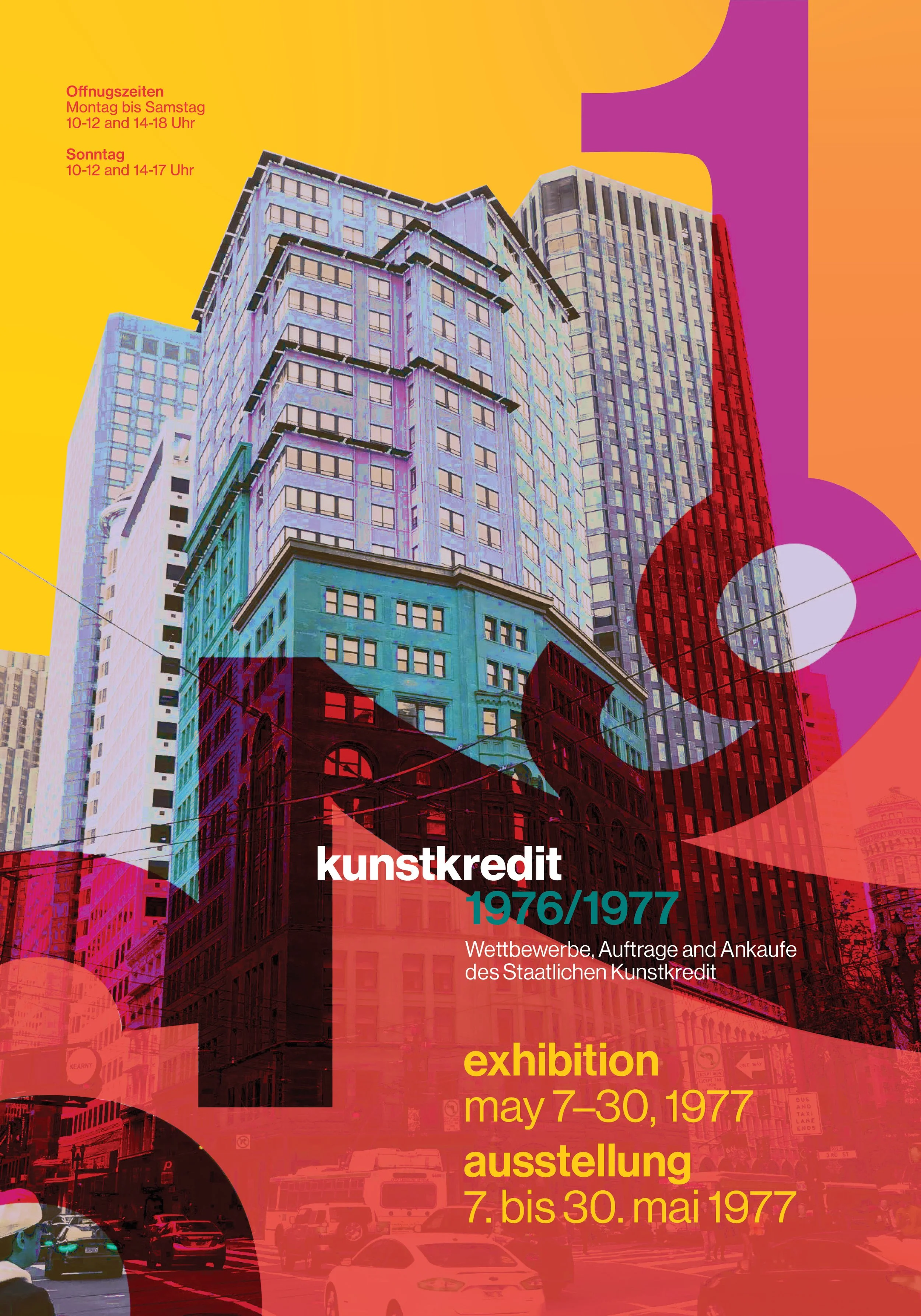 A cover poster that translates Wolfgang Weingart’s Kansthalle Basel Kunstkredit 76-77 exhibition poster from black and white to full color. Poster dimensions: 50 3/8 in. x 35 in.